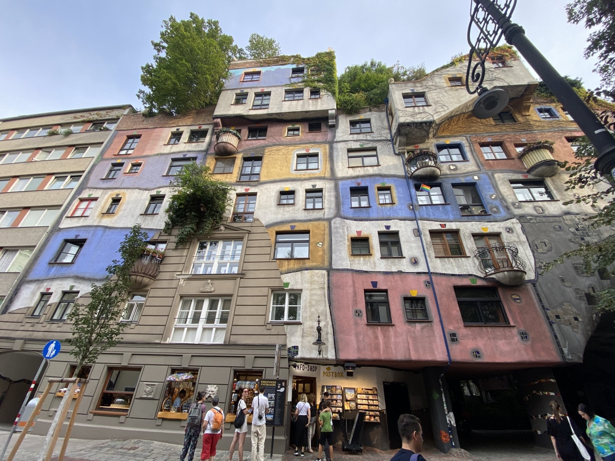 A kurzus előtt vagy után igyekeztem minél többet látni Bécsből, és minden alkalommal lenyűgözött a város sokszínűsége. Az utcákon sétálva különböző nemzetiségek kavalkádja fogadott, és ezért az éttermek sokszínűségével is szembesültem. A város számos nevezetességgel rendelkezik, amelyek közül az egyik legemlékezetesebb számomra a Hundertwasserhaus volt. Ez a különleges lakóépület a híres osztrák művész, Friedensreich Hundertwasser nevéhez fűződik, és a modern építészet egyik gyöngyszeme. Az épület élénk színei, formái és a természetbe illeszkedő elgondolása lenyűgöző volt számomra. A ház homlokzatát növények borítják, az emeleteken zöldellő fák és bokrok nőnek, sőt, a tetőn is megtalálható a növényzet. Ez az épület nemcsak esztétikai szempontból különleges, hanem a környezetvédelem és a fenntartható városi élet szimbóluma is. Bécs városképe tele van zöldterületekkel, parkokkal, és még a lakótömbök között is számos helyen találkozhatunk növényzettel. A város kiemelt figyelmet fordít a környezetvédelemre. A Práter, a Stadtpark, és a Belvedere kertjei mind-mind olyan helyek, ahol az ember igazán felfrissülhet. Egy bécsi látogatás természetesen nem lehet teljes anélkül, hogy ne kóstolnánk meg az osztrák konyha remekeit. Az egyik kedvenc helyem a híres Demel kávézó lett, ahol az osztrák kávéspecialitások mellett az életem legfinomabb császármorzsáját is megízlelhettem. Ez a hagyományos desszert annyira tökéletes volt, hogy legszívesebben minden nap visszatértem volna ide, de hát sajnos a pénztárcám nem tette ezt lehetővé. A Stephansdom, Bécs egyik legismertebb székesegyháza, lenyűgöző gótikus építészeti stílusával méltán vált a város jelképévé. Szintén nagy hatást gyakorolt rám a Belvedere kastély, amely nemcsak egy gyönyörű barokk épület, hanem a világ egyik legjelentősebb művészeti gyűjteményének is otthont ad. Felkerestem a híres Karlskirche elnevezésű barokk templomot. Bécs nevezetességei között nem lehet kihagyni a Hofburgot sem, amely évszázadokon át a Habsburg-dinasztia téli rezidenciájaként szolgált. A hét során találkoztam egy volt Hunfalvys diákommal, aki jelenleg Bécsben tanul építészetet. Hát mit mondjak nagyon jól éreztük magunkat. Kávéztunk egy jót, és felidéztük közös emlékeinket, miközben új élményeinkről is meséltünk egymásnak, csak úgy röpült az idő. Ez a találkozó igazán különleges volt számomra, minden percét élveztem.
