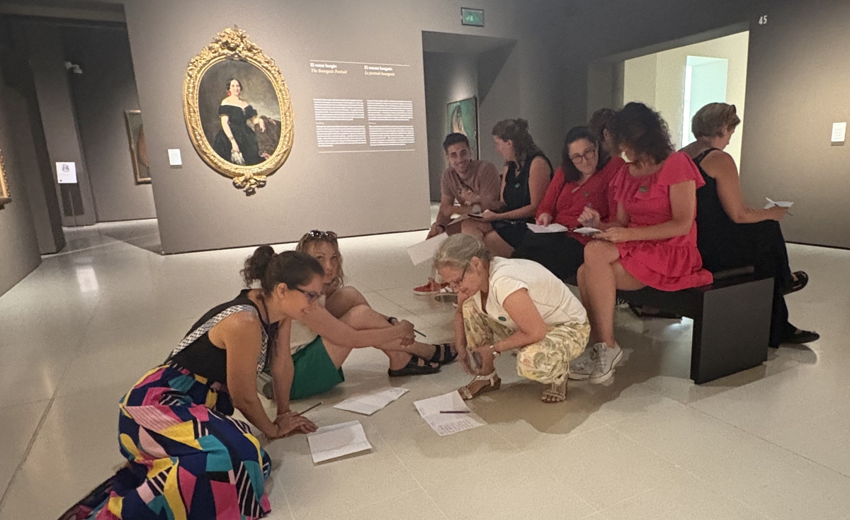 Ezen felül részt vettünk egy múzeumpedagógiai foglalkozáson is a Katalán Nemzeti Múzeumban, amely során először kipróbáltuk a projektoktatást a gyakorlatban, majd átbeszéltük, hogy egy iskolán kívüli projektet hogy érdemes előkészíteni, milyen feladatokat lehet adni csoportmunkára (pl.: megadott téma alapján szabadon választott festményekről kellett rövid videókat készíteni és a többi csoporttal padlet felületen megosztani).